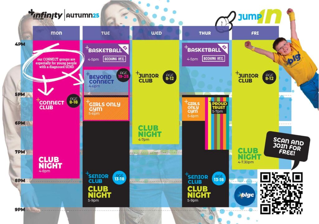 Your opportunities, right here, right now, are endless. Start exploring them now at INFINITY. Whether you fancy kicking back with mates or kicking on with big plans for your future, BLGC is here to help you make it happen.